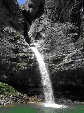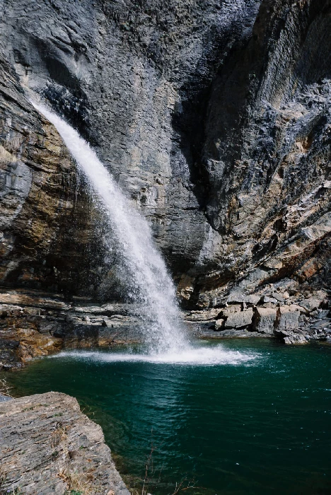 Atravesamos el cercado que queda a nuestra derecha. A los pocos metros dejamos la pista para continuar por un sendero que nace a su izquierda. Un poco mas adelante abandonamos el itinerario que lleva a Cochata y al embalse de Escarra, para seguir por llano entre prados con arbustos y algún que otro árbol, pasado enseguida al lado del corral de la Artica Sarriales. Pasamos después por dos zonas de piedra, con buen sendero, y nos asomamos al poco al Río Escarra, desde donde ya vemos el salto o cascada conocida como O Saldo. Tras un corto descenso acabamos junto al río, al pie mismo del salto.